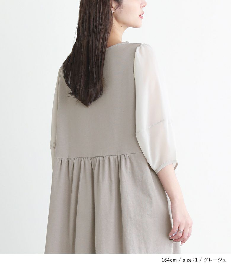 他の画像を見る 【40%OFF】選べるM~3Lサイズ展開!袖に透け感があるランタンスリーブワンピース。 『n'OrLABEL異素材ランタンスリーブワンピース』※返品交換不可※【メール便不可】【20】 定価 ¥ 4,980 のところ ¥ 2,987 税込 4.29 (7)