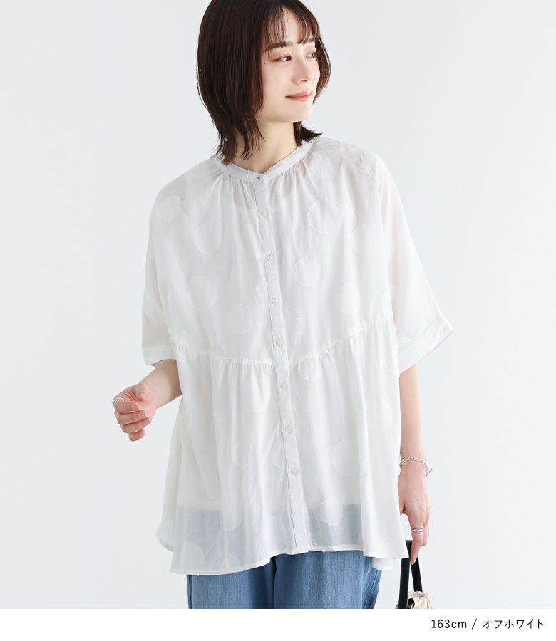 他の画像を見る 【40%OFF】大きめドット柄のカットジャカード生地がお洒落に導くブラウス。 『ドット柄カットジャカードシャツブラウス』※返品交換不可※※メール便可※【10】 定価 ¥ 4,980 のところ ¥ 2,987 税込 (0)