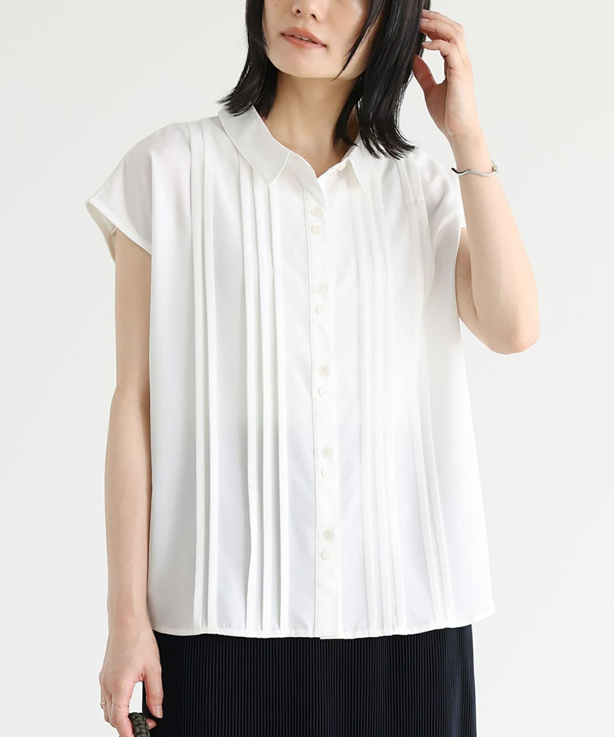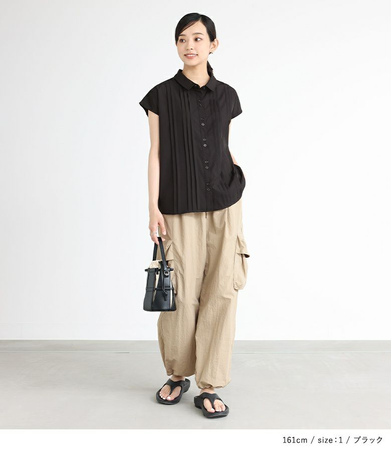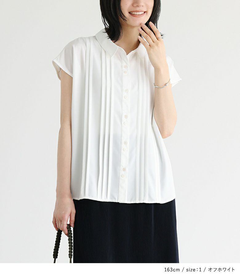 他の画像を見る 【40%OFF】胸元のランダムピンタックがポイントになったブラウス。 『フレンチスリーブピンタックブラウス』※返品交換不可※※メール便可※【10】 定価 ¥ 3,960 のところ ¥ 2,376 税込 5.00 (1)