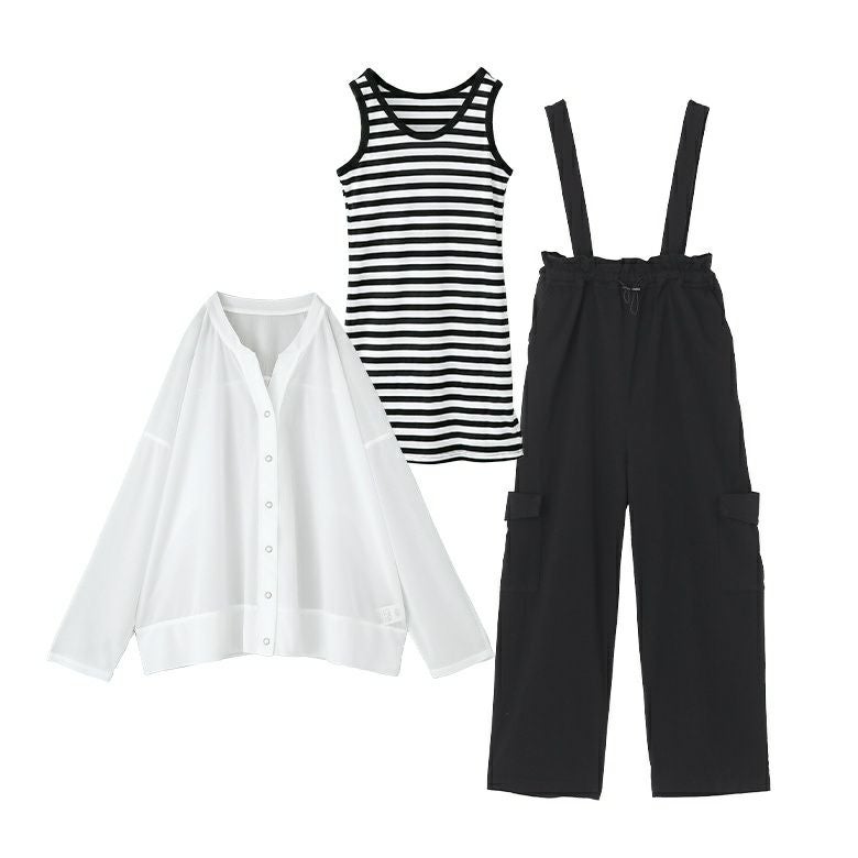 『シアーカーディガンが春らしいモノトーンコーデ3点SET』