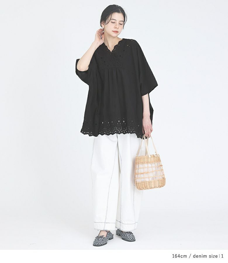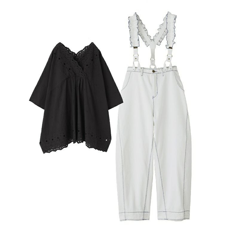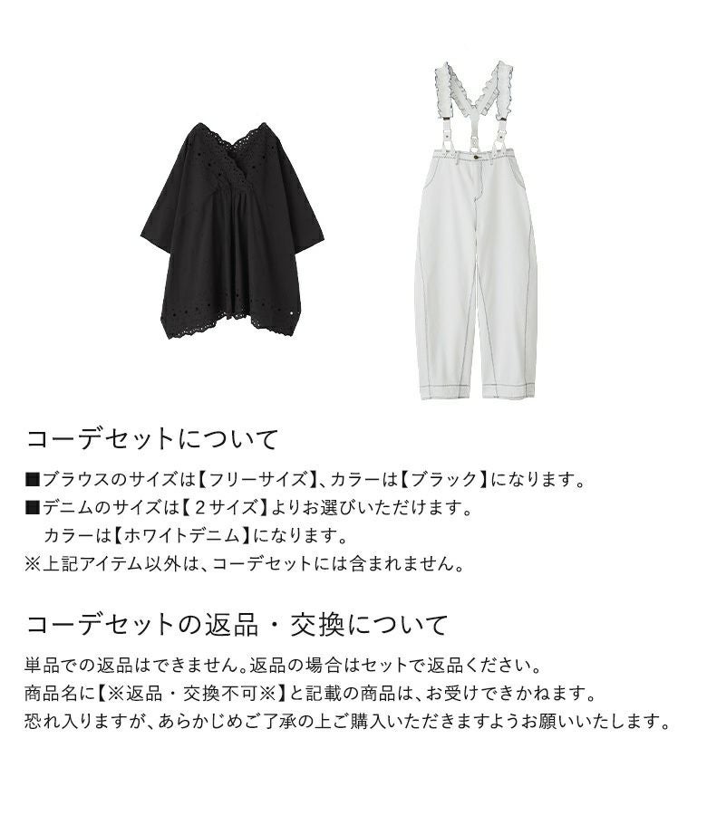 『コットンレースブラウス×フリルサスペンダー付きデニムコーデ2点SET』