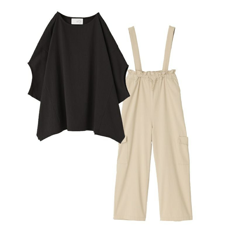 『ドルマンカットソー×ウエストドロストサロペットコーデ2点SET』