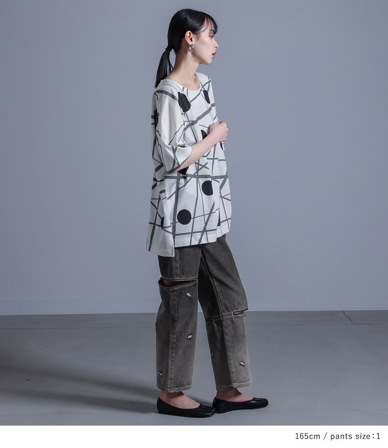 4. 【送料無料】『ランダムドット柄モードTシャツ×ジップデザイングラデーションデニムパンツコーデ2点SET』【メール便不可】【30】