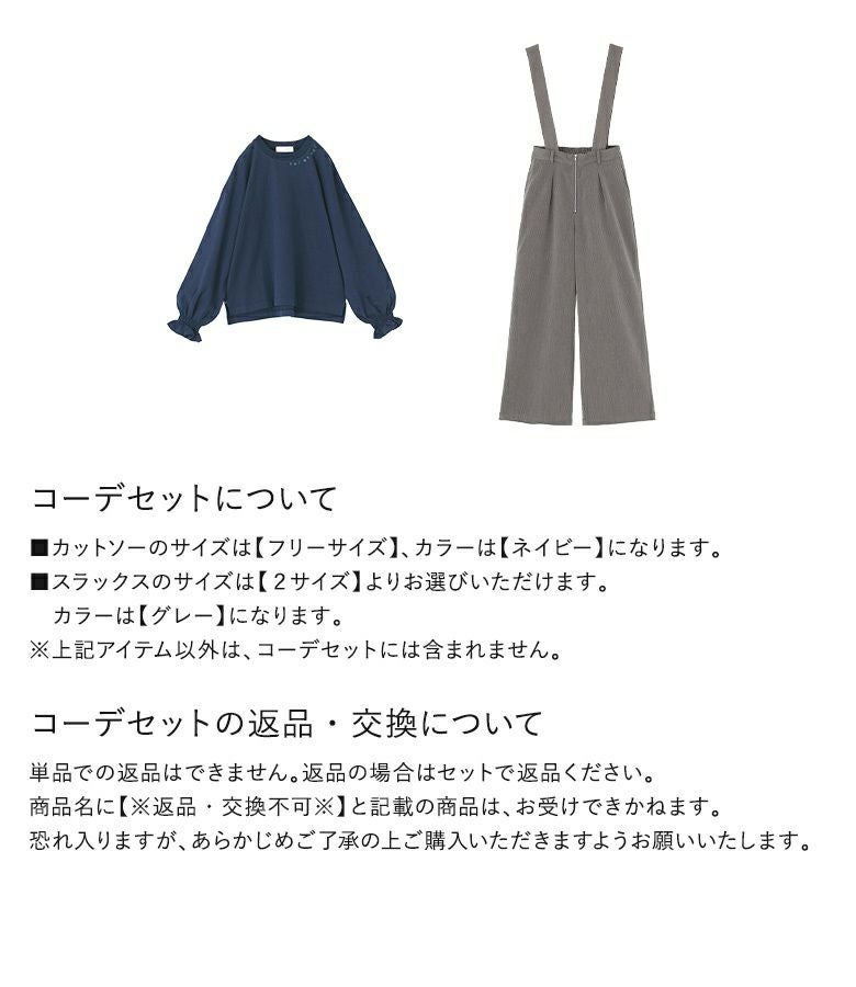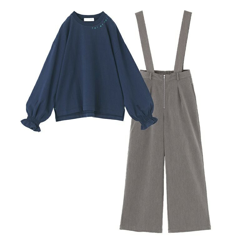 『サスペンダー付きスラックス×キャンディスリーブロゴカットソーコーデ2点SET』