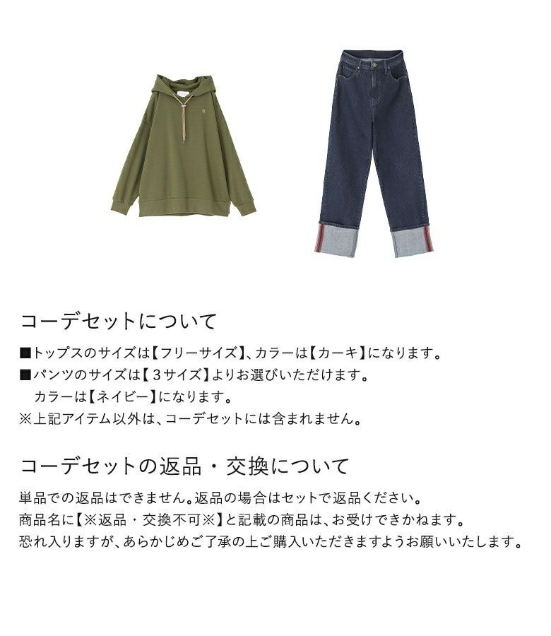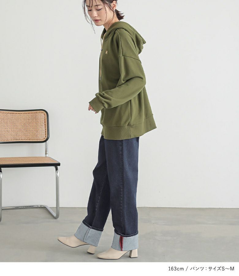 4. 【送料無料】『ロゴ刺繍デザインフーディー×ロールアップストレートデニムパンツコーデ2点SET』【メール便不可】【50】