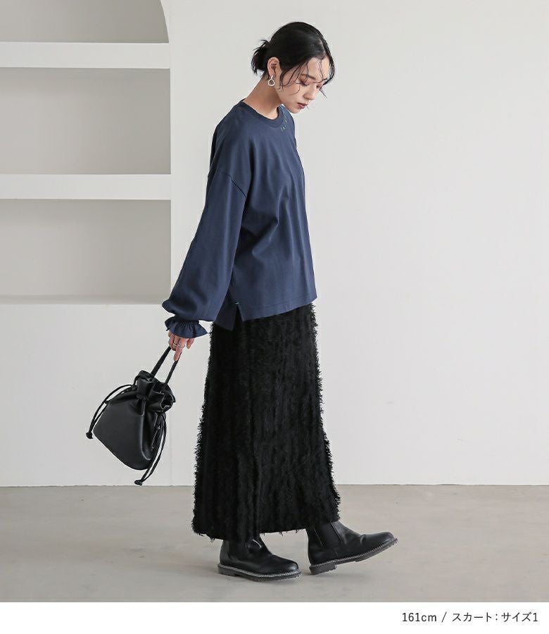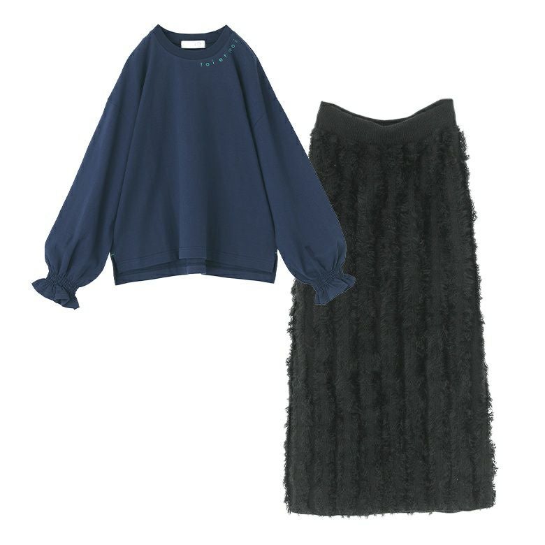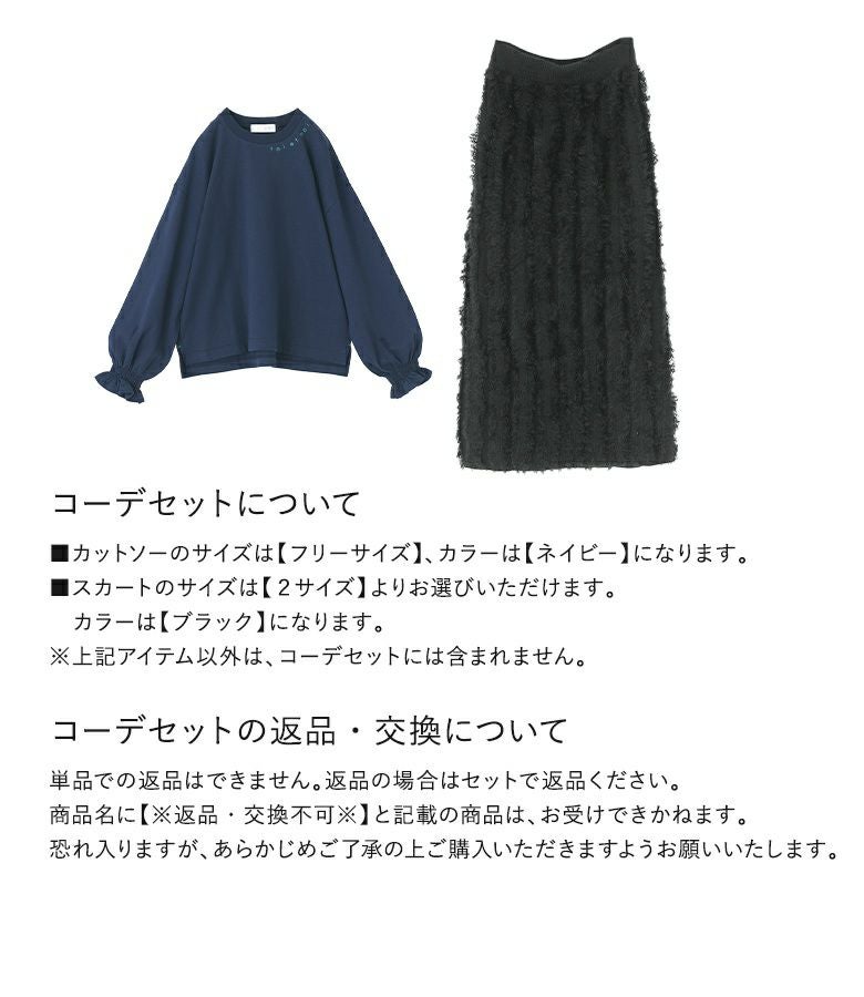 『キャンディスリーブロゴカットソー×フリンジニットナロースカートコーデ2点SET』