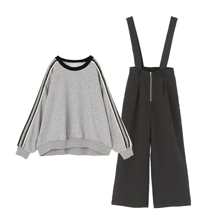 『サスペンダー付きスラックス×ラインテープ裏毛スウェットコーデ2点SET』