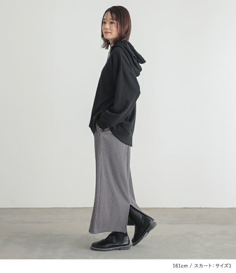 4. 『ロゴ刺繍デザインフーディー×リブニットソースカートコーデ2点SET』【メール便不可】【60】