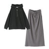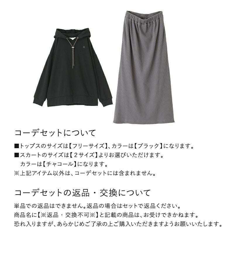 『ロゴ刺繍デザインフーディー×リブニットソースカートコーデ2点SET』