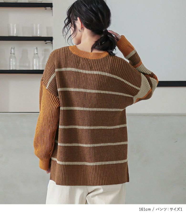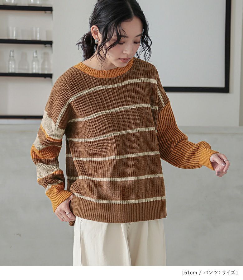 4. 【送料無料】『マルチボーダーニット×配色ステッチチノパンツコーデ2点SET』【メール便不可】【50】