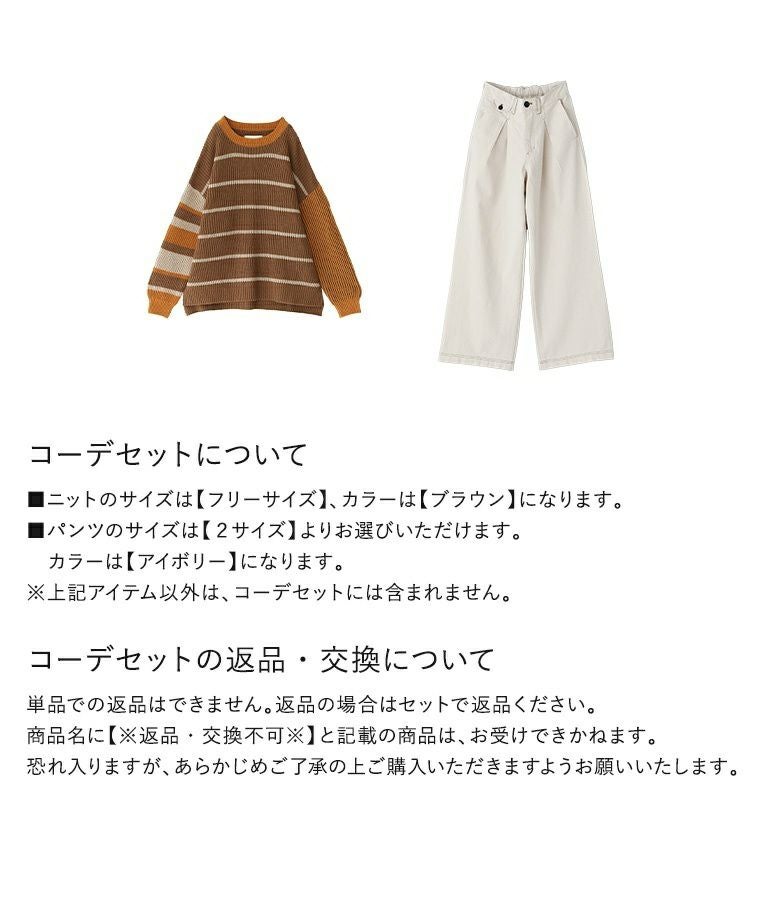 『マルチボーダーニット×配色ステッチチノパンツコーデ2点SET』