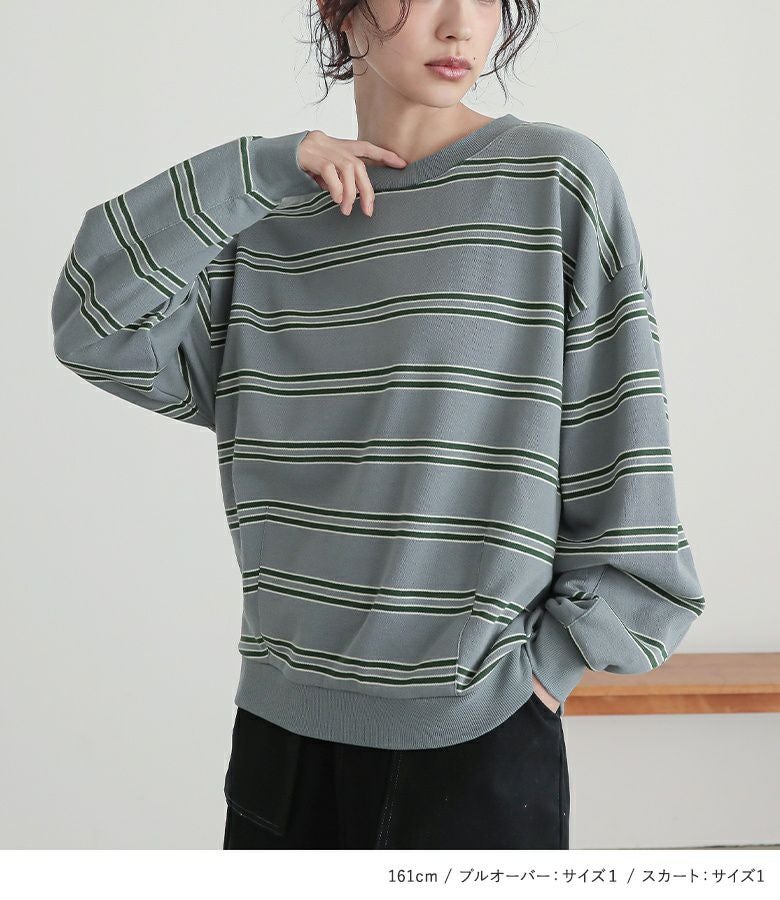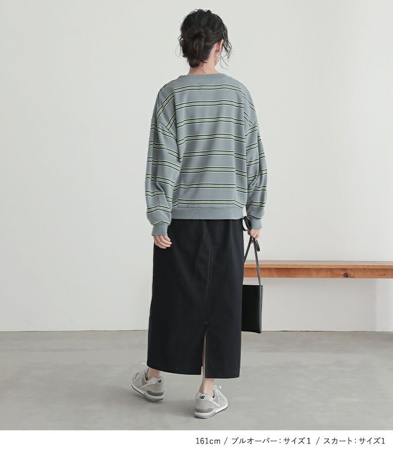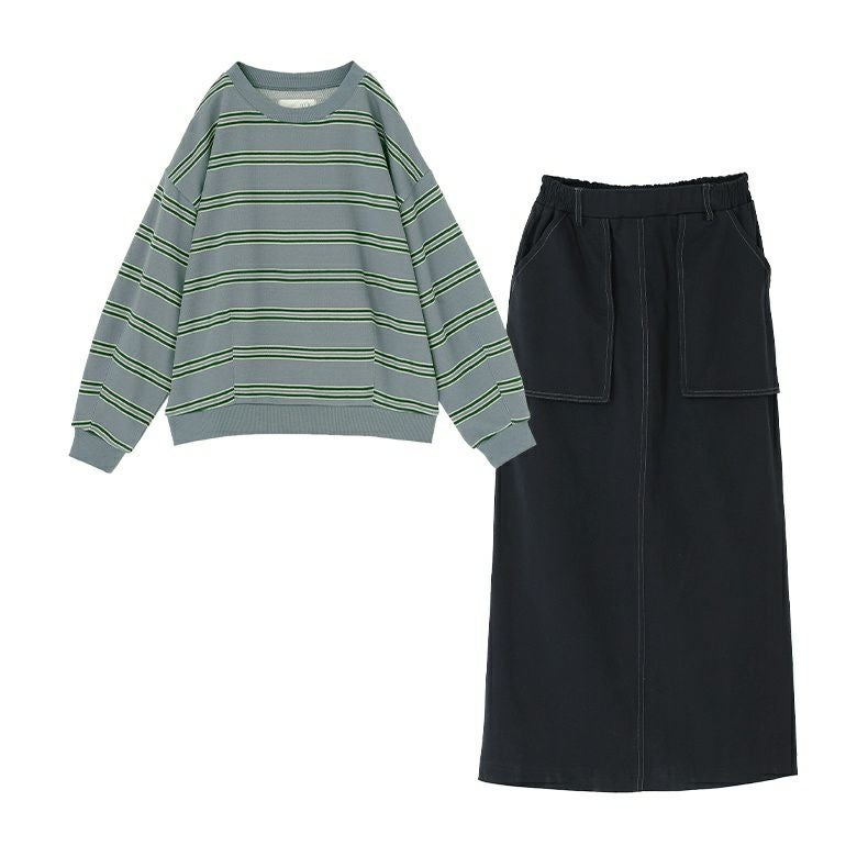 『裏毛ボーダープルオーバー×立体ポケットナロースカートコーデ2点SET』