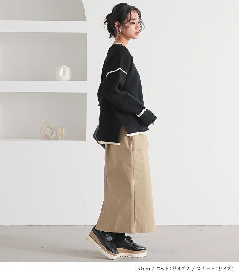 4. 『配色ラインスポンジニット×立体ポケットナロースカートコーデ2点SET』【メール便不可】【50】