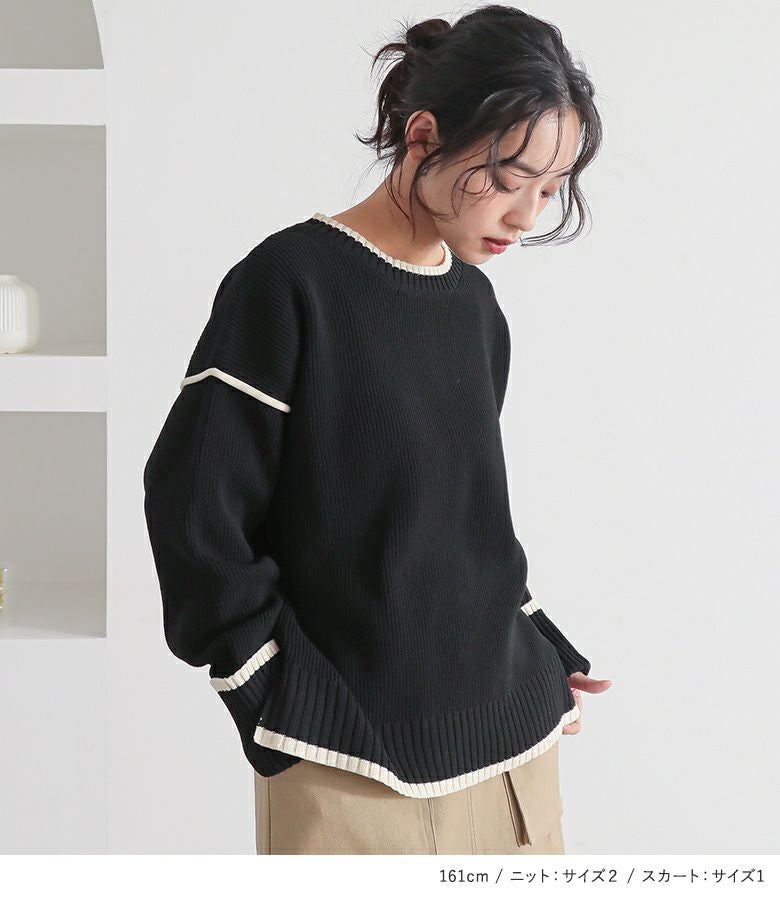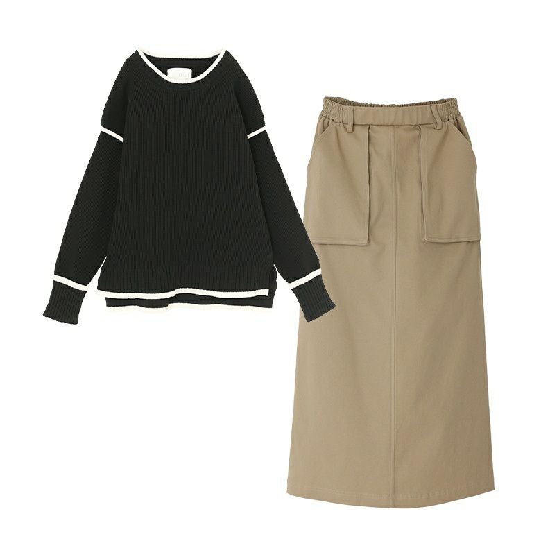 『配色ラインスポンジニット×立体ポケットナロースカートコーデ2点SET』