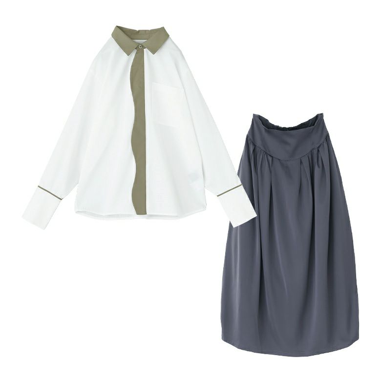 『配色シャツ×ハイウエストコクーンスカートコーデ2点SET』