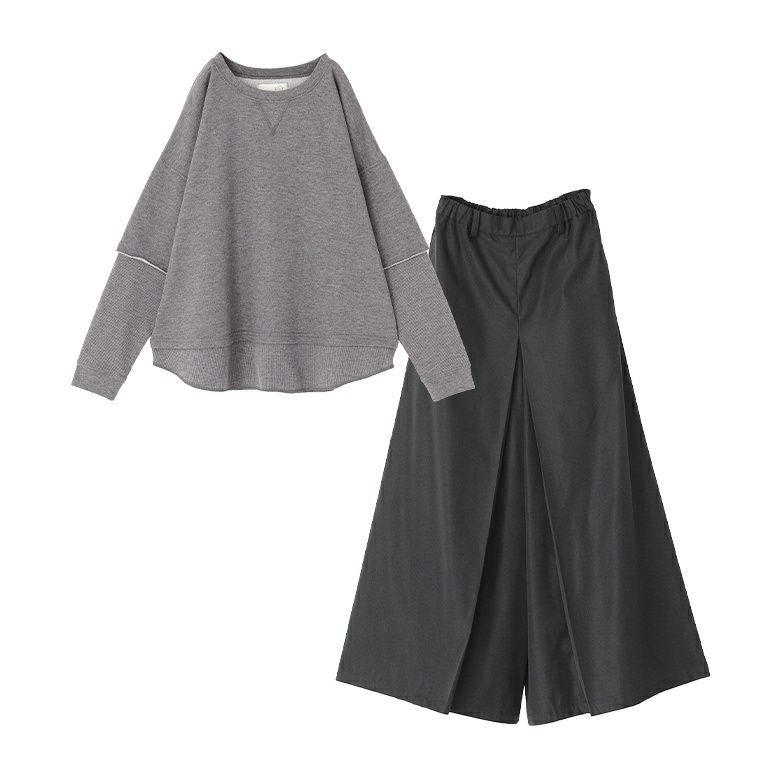 『スカート見えパンツ×フェイクレイヤードスウェットコーデ2点SET』