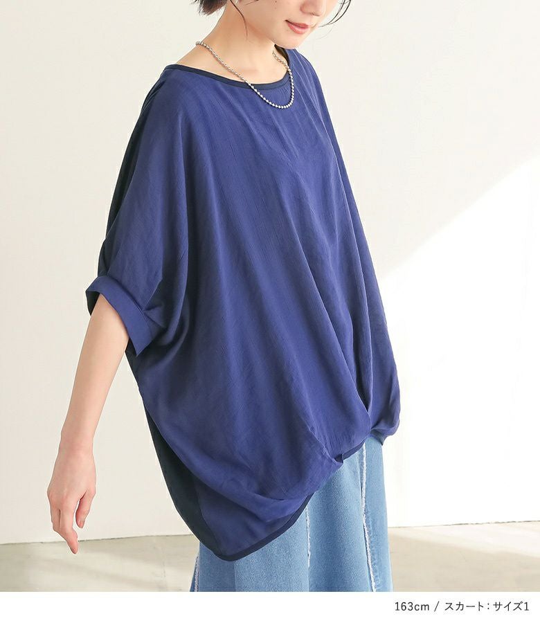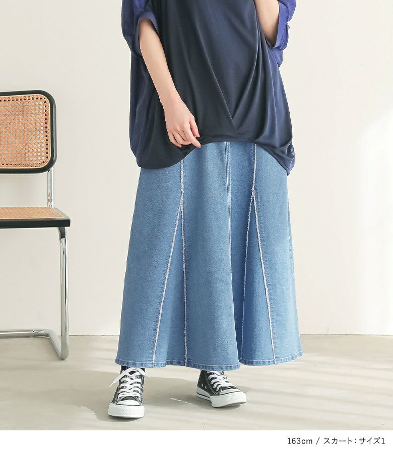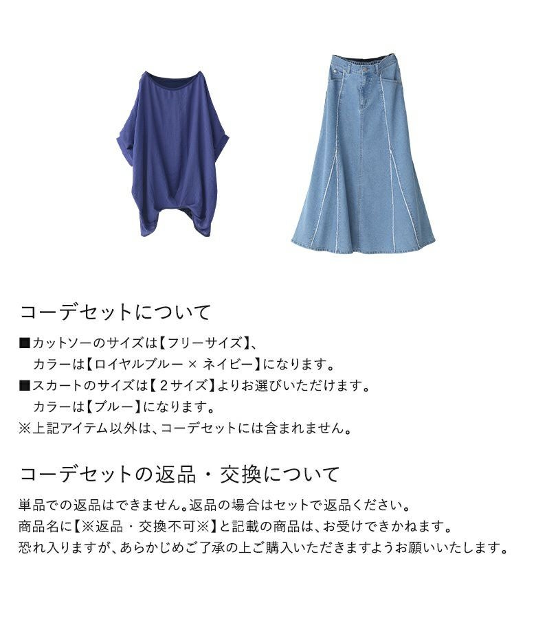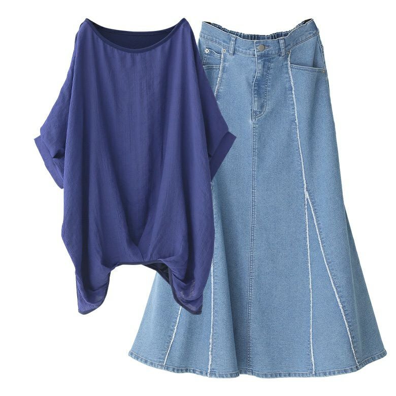 『異素材配色ドレープカットソー×フリンジデニムマーメイドスカートコーデ2点SET』