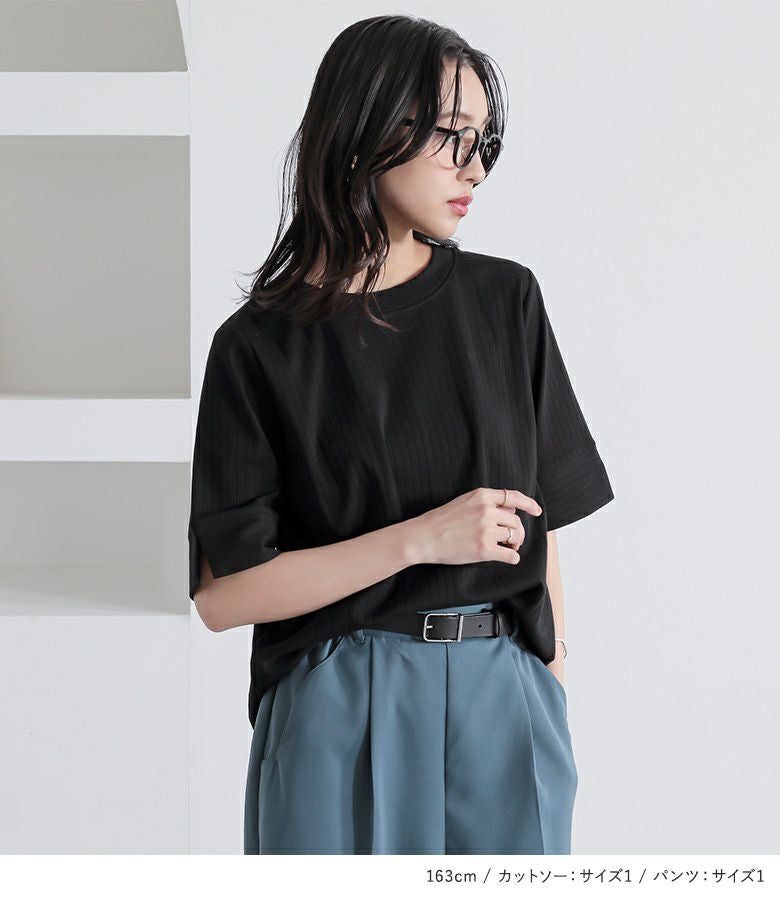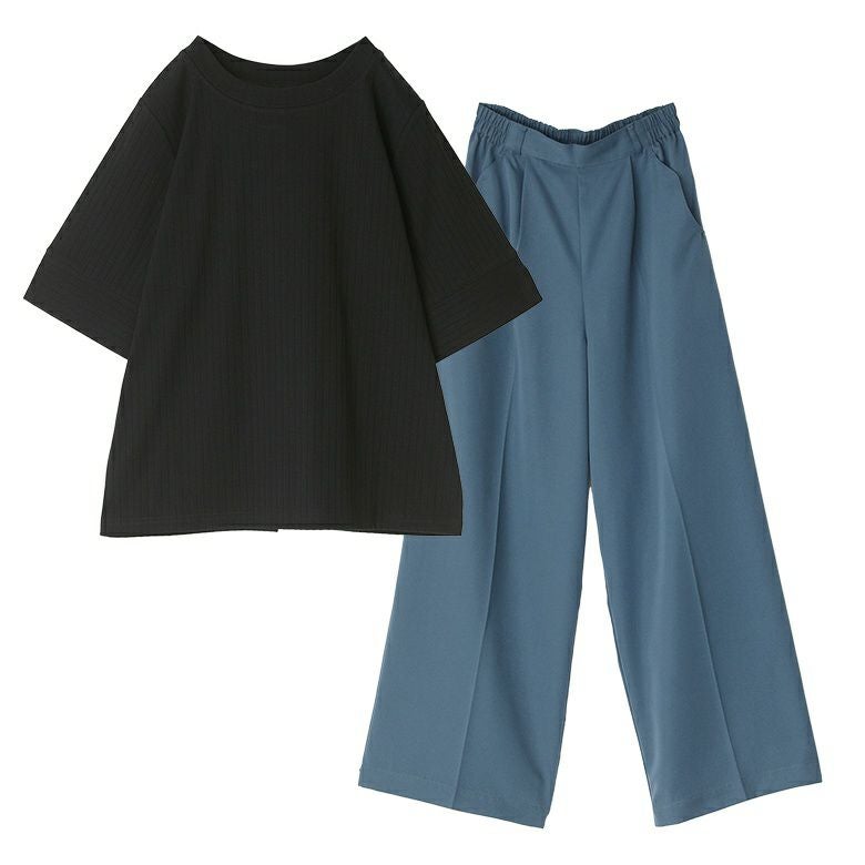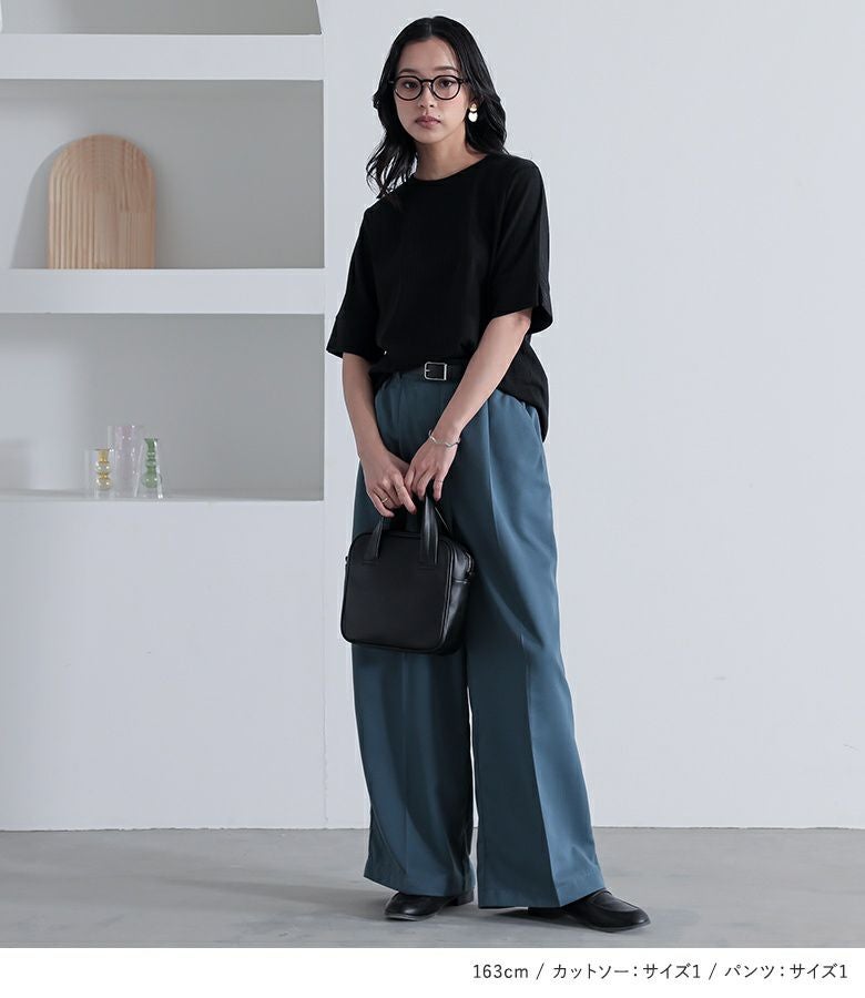『汗じみ軽減ワイドリブカットソー×タックワイドスラックスコーデ2点SET』
