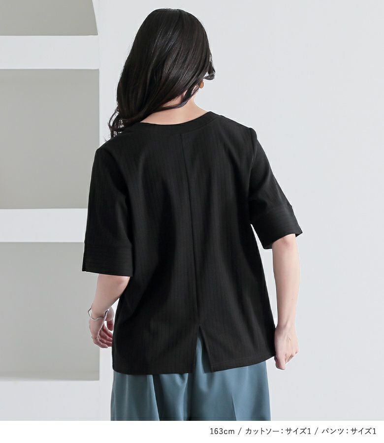 4. 『汗じみ軽減ワイドリブカットソー×タックワイドスラックスコーデ2点SET』【メール便不可】【30】