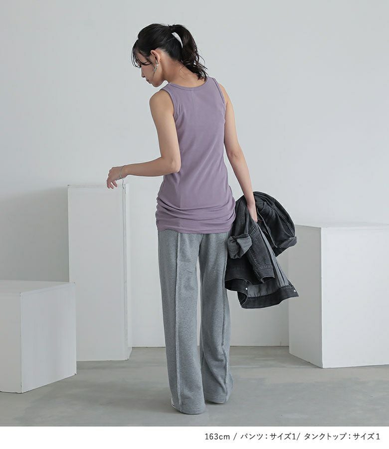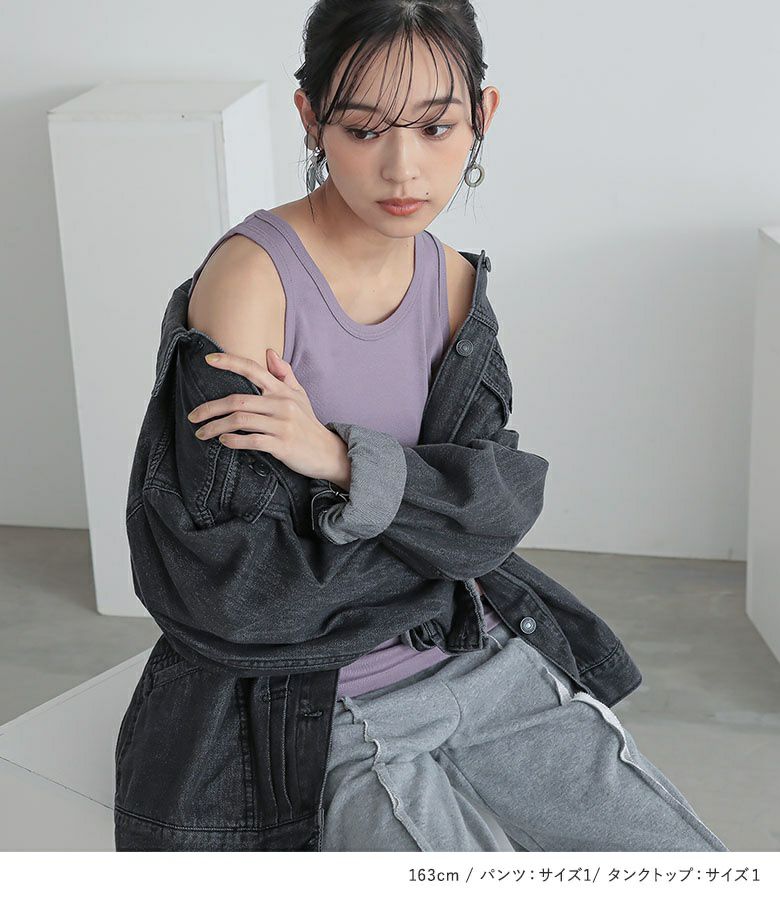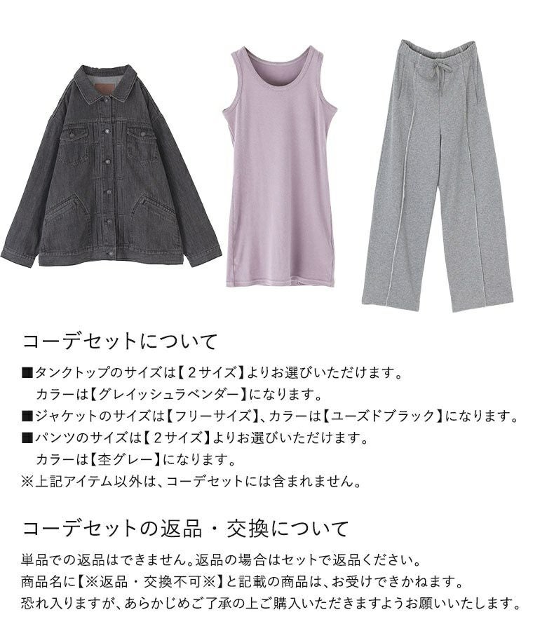 『レディースロングタンク×アウトラインスウェットパンツ×軽量デニムジャケットコーデ3点SET』