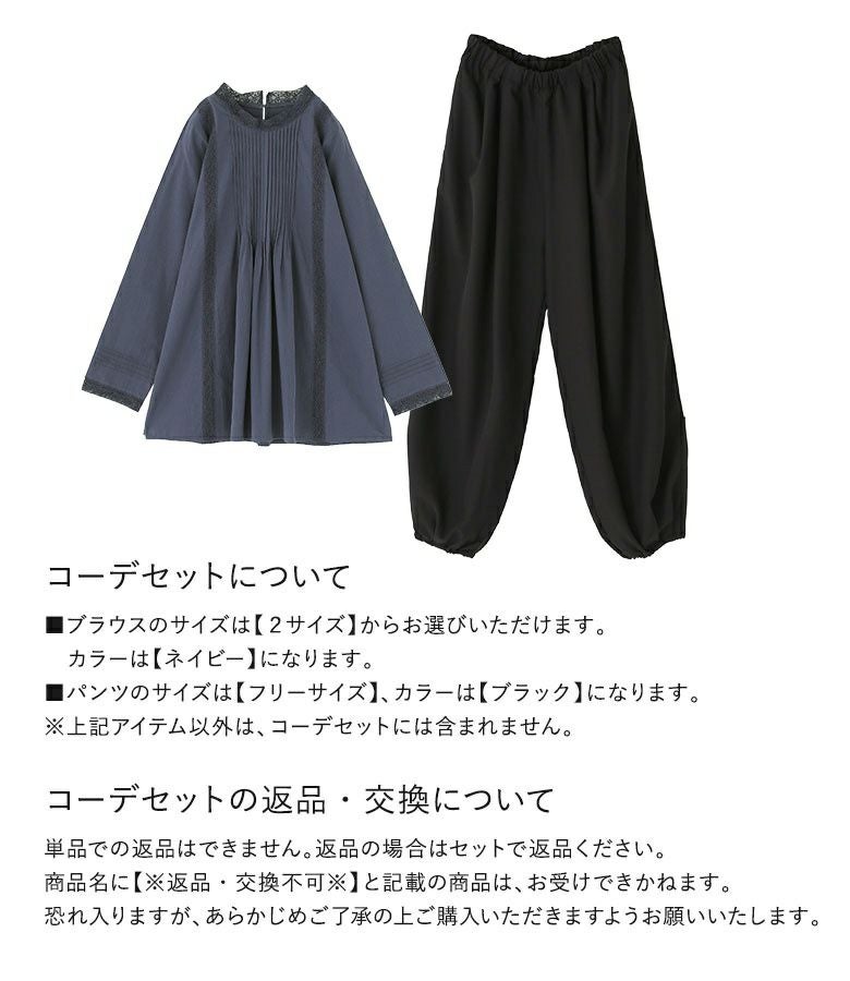 『レースピンタックブラウス×とろみタックバルーンパンツコーデ2点SET』