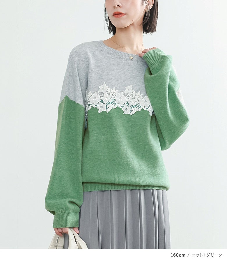 4. 『レース付配色ニット×ボンディングプリーツスカートコーデ2点SET』【メール便不可】【50】