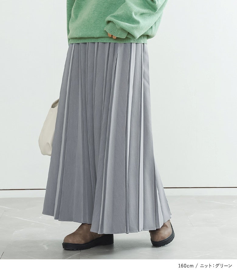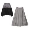 『レース付配色ニット×ボンディングプリーツスカートコーデ2点SET』
