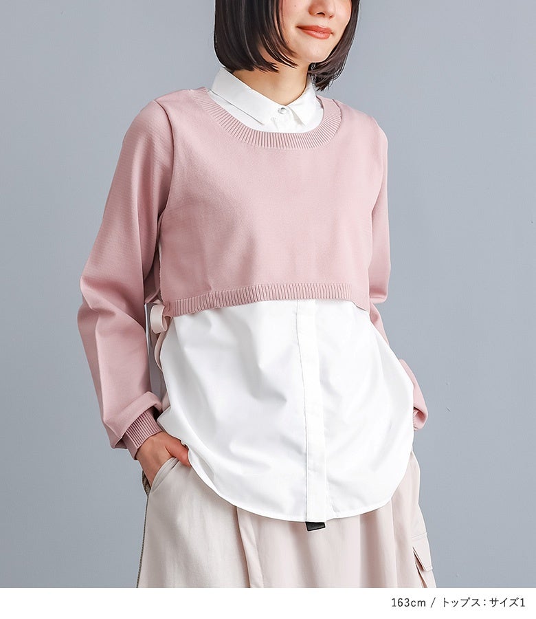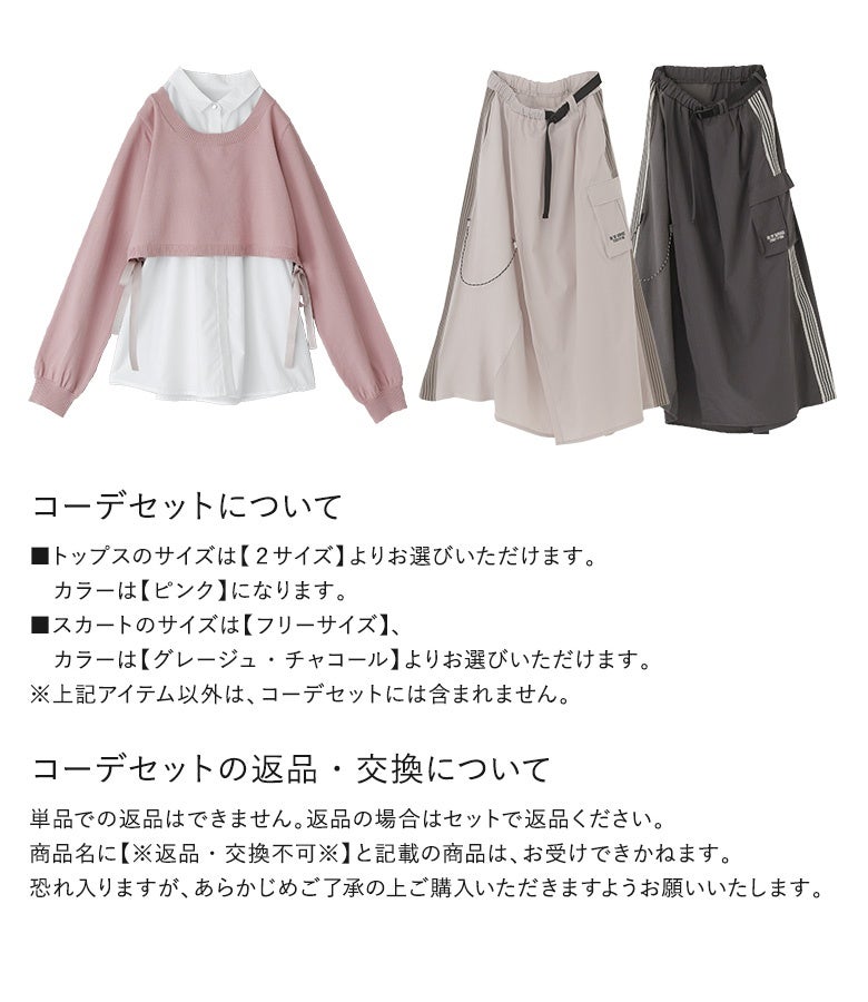 『異素材トラック巻きスカート×シャツドッキングニットプルオーバーコーデ2点SET』