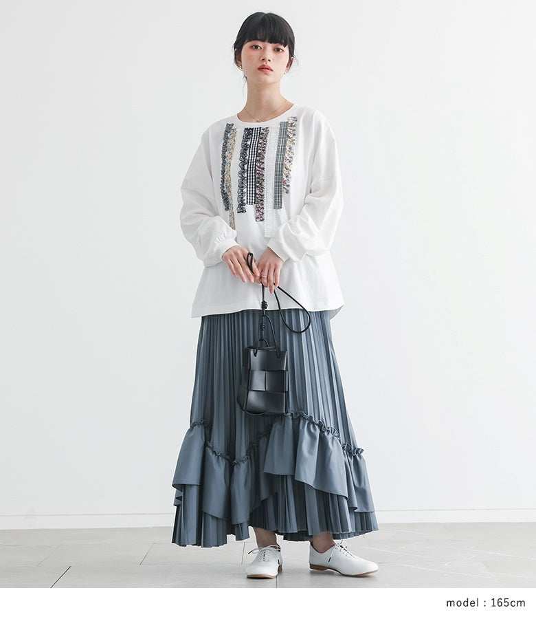 4. 『プリントテープデザインカットソー×ティアードプリーツスカートコーデ2点SET』【メール便不可】【50】