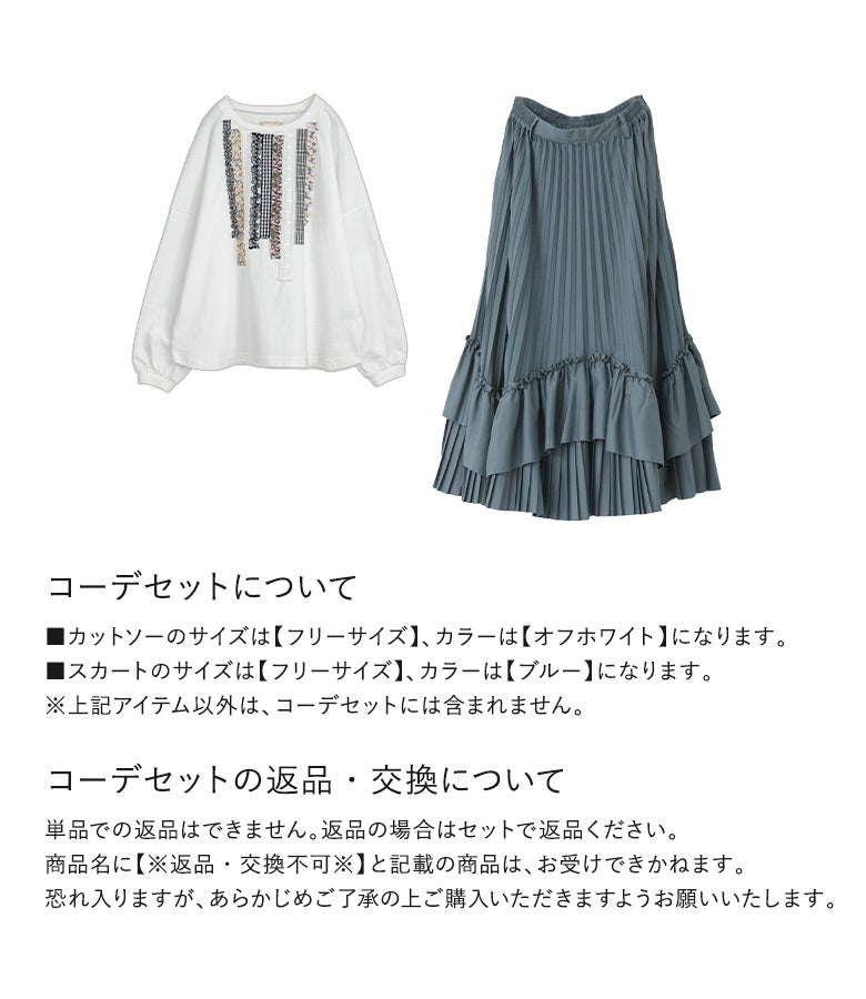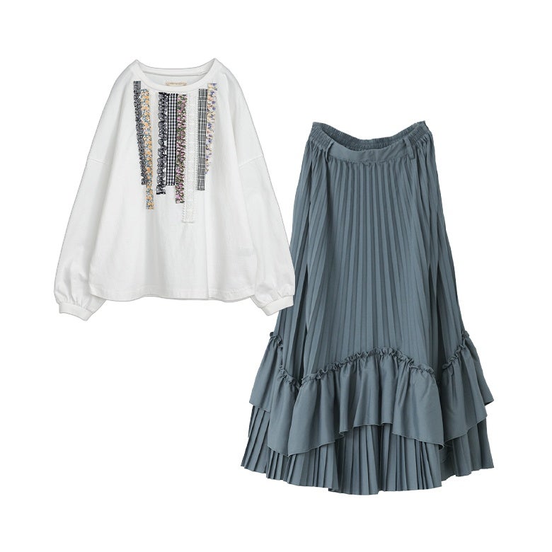 『プリントテープデザインカットソー×ティアードプリーツスカートコーデ2点SET』