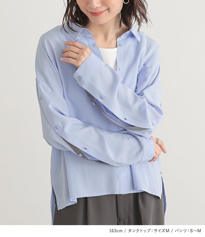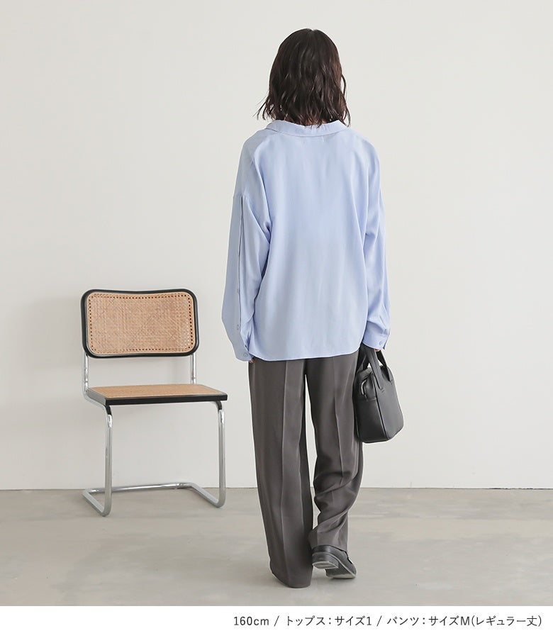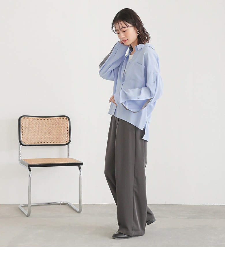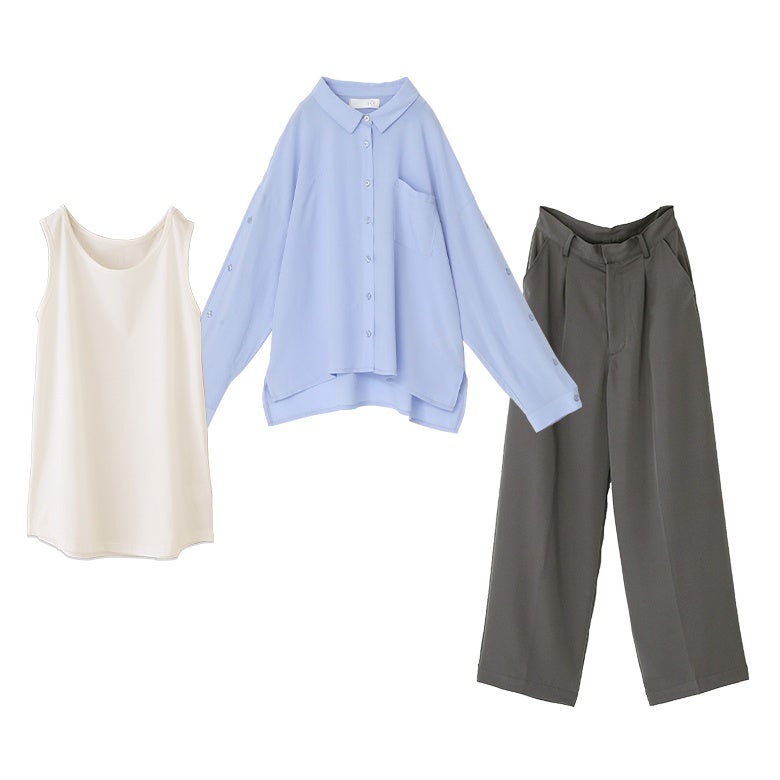 4. 『配色オープンスリーブシャツ×シンプルコットンタンクトップ×センタープレスストレートスラックスコーデ3点SET』【メール便不可】【35】