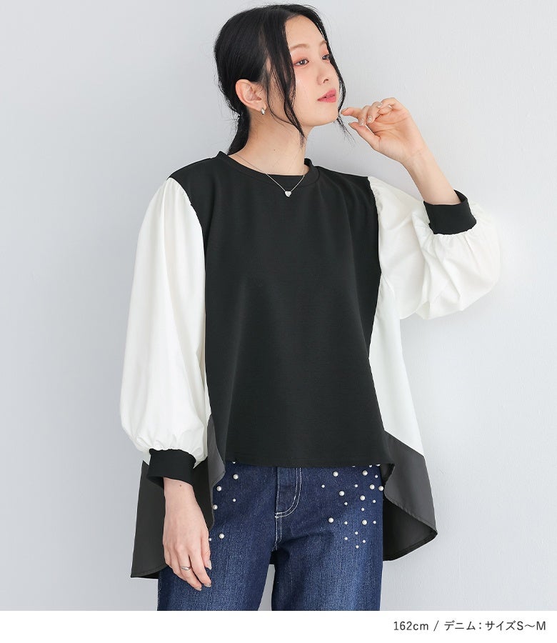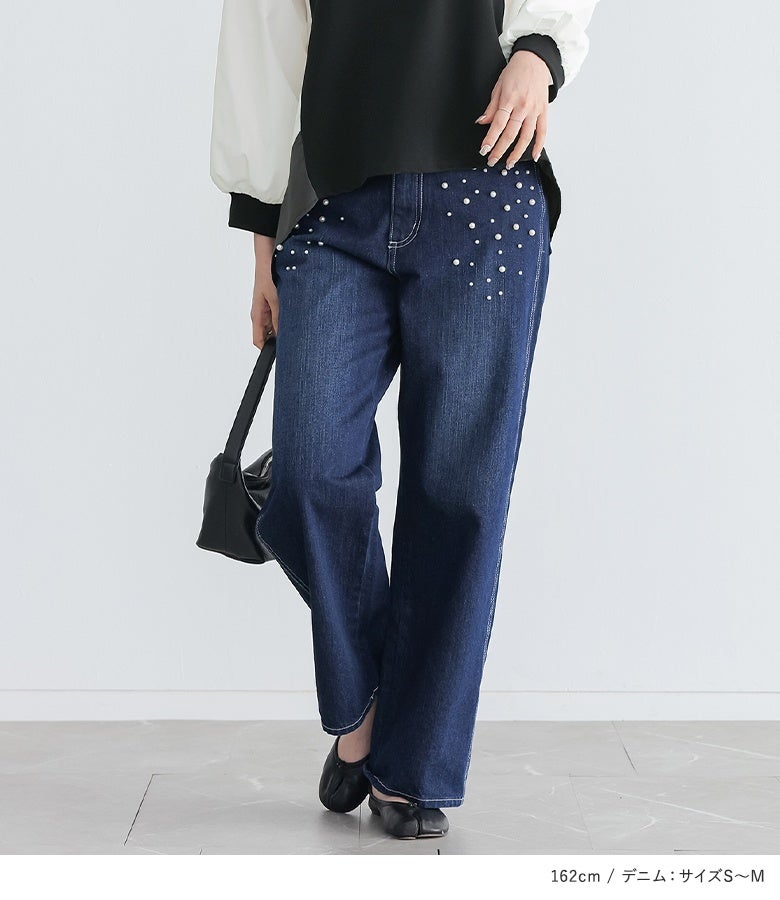 4. 『ベスト風シャツ配色プルオーバー×フェイクパール付きストレートデニムコーデ2点SET』【メール便不可】【40】