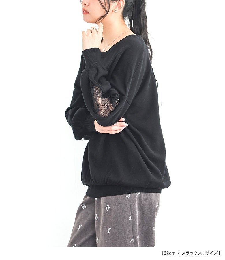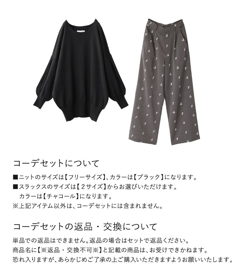 4. 『スラッシュスリーブレースニット×花柄刺繍スラックスコーデ2点SET』【メール便不可】【30】