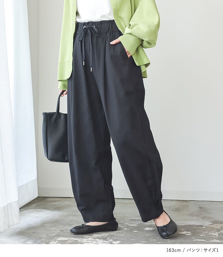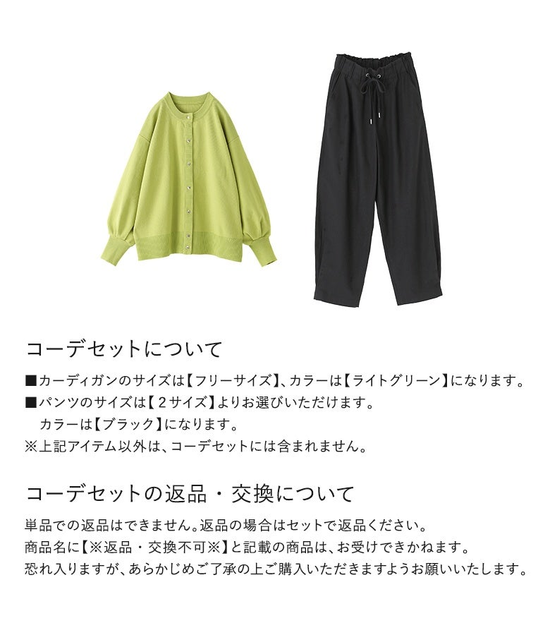 4. 『ボリュームスリーブ配色カーディガン×脇タックコクーンパンツコーデ2点SET』【メール便不可】【40】