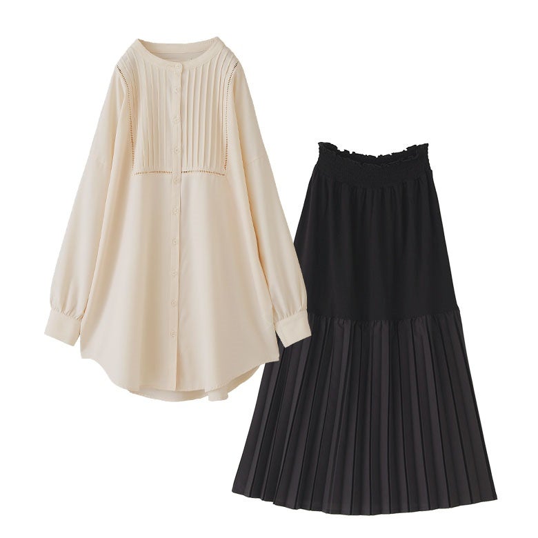 『プリーツペチコートスカート×ピンタックはしごレースブラウスコーデ2点SET』
