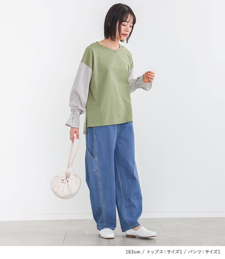 4. 『異素材キャンディースリーブカットソー×サルエルペインターデニムパンツコーデ2点SET』【メール便不可】【40】