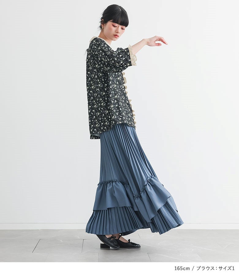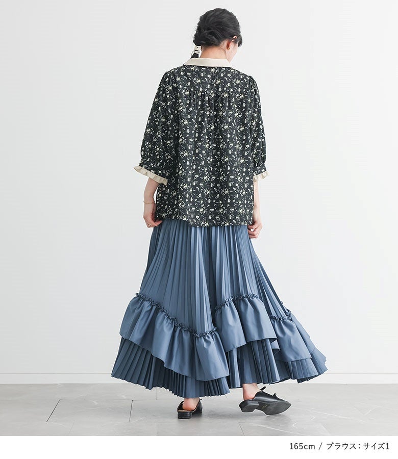 4. 『花柄配色ブラウス×ティアードプリーツスカートコーデ2点SET』【メール便不可】【30】