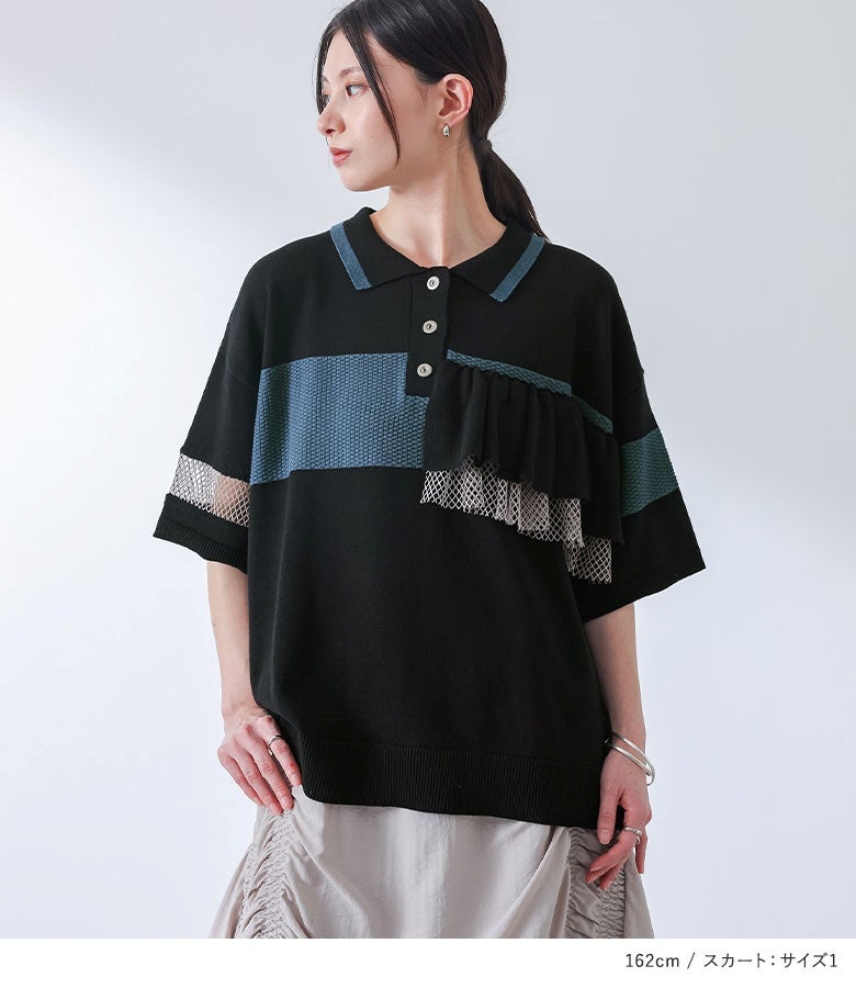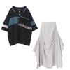 4. 『配色フリルポロニット×アシンメトリーシャーリングスカートコーデ2点SET』【メール便不可】【30】