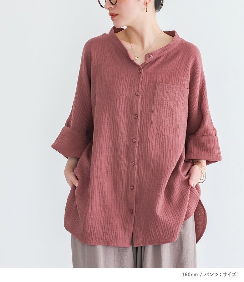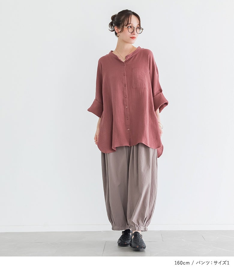 4. 『ダブルガーゼバンドカラーシャツ×アラビアンパンツコーデ2点SET』【メール便不可】【40】