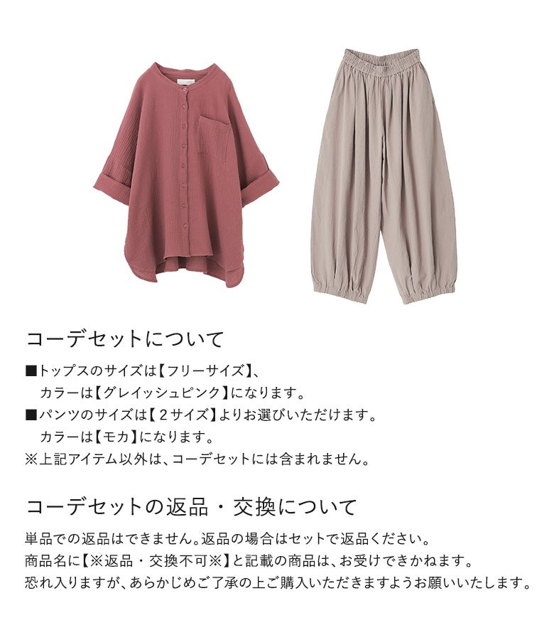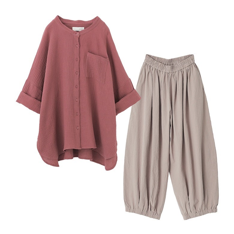 『ダブルガーゼバンドカラーシャツ×アラビアンパンツコーデ2点SET』
