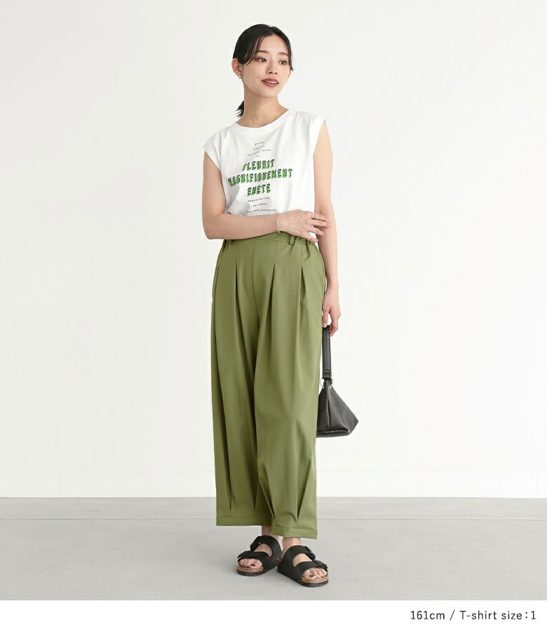 『ロゴフレンチスリーブTシャツ×ボックスタックアンクル丈パンツコーデ2点SET』