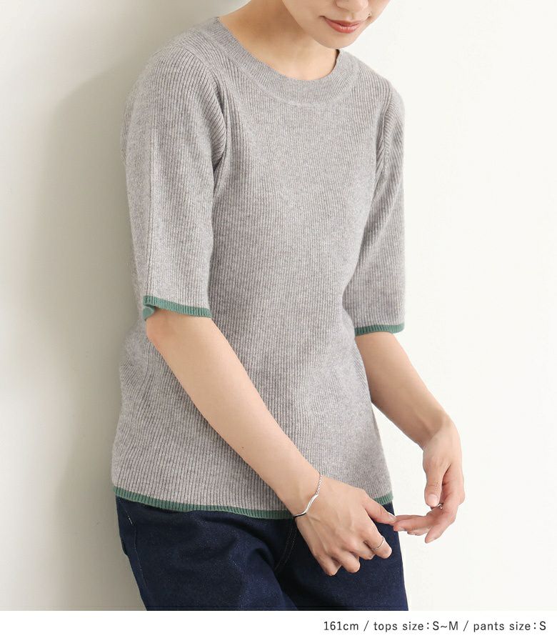 4. 【送料無料】『配色ライン5分袖リブニット×カーブシルエットデニムコーデ2点SET』【メール便不可】【30】
