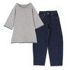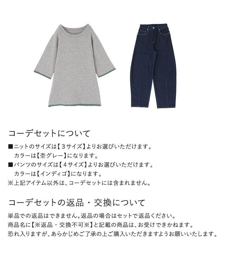 『配色ライン5分袖リブニット×カーブシルエットデニムコーデ2点SET』