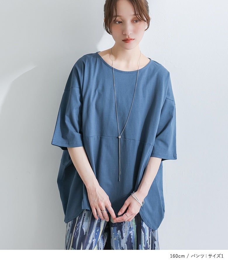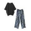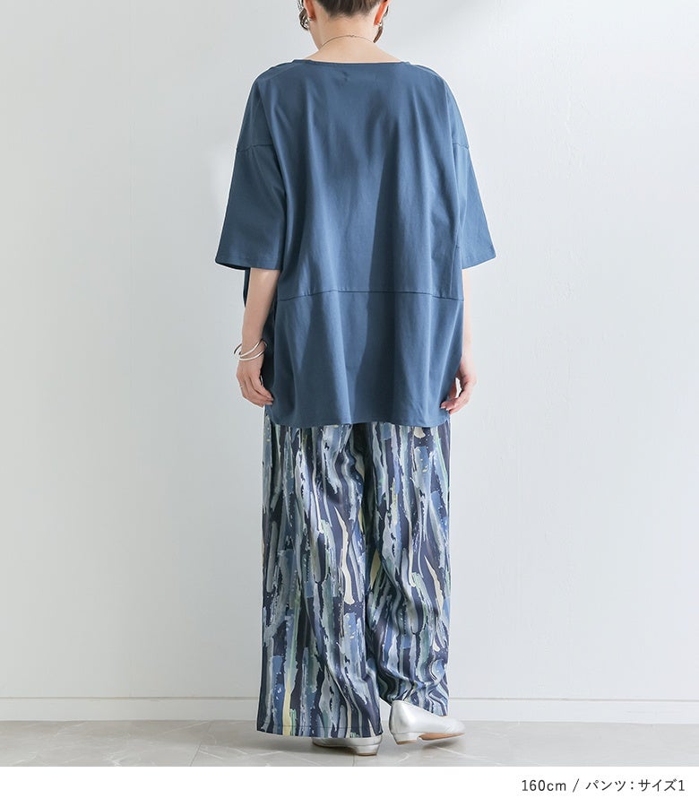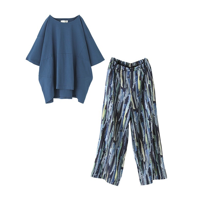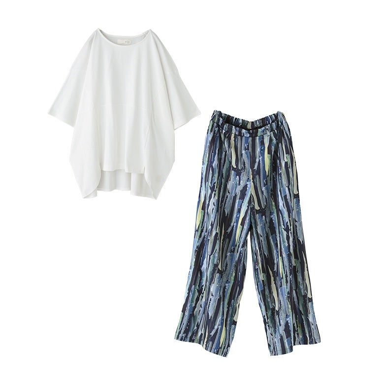 『汗じみ防止切替コクーンカットソー×水彩プリントワイドパンツコーデ2点SET』