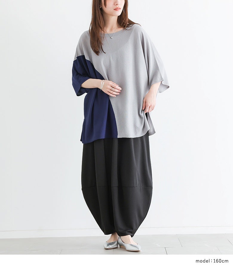 4. 『冷感ドルマン配色ニット×ポンチコクーンパンツコーデ2点SET』【メール便不可】【30】