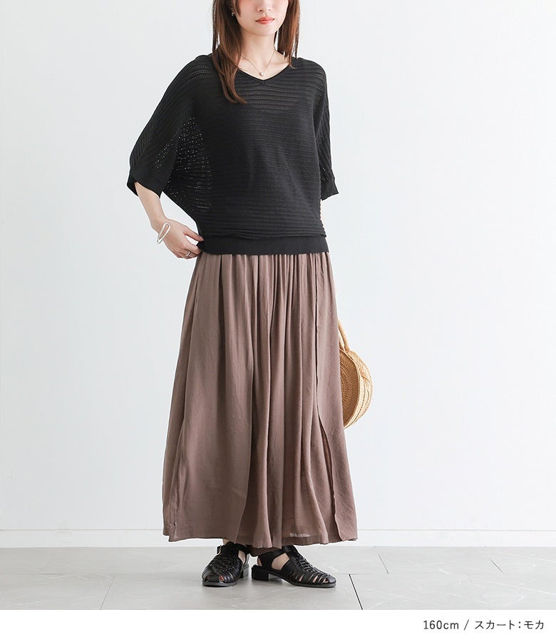 4. 『透かし編みドルマンサマーニット×ゆるひら涼スラブパンツコーデ2点SET』【メール便不可】【20】