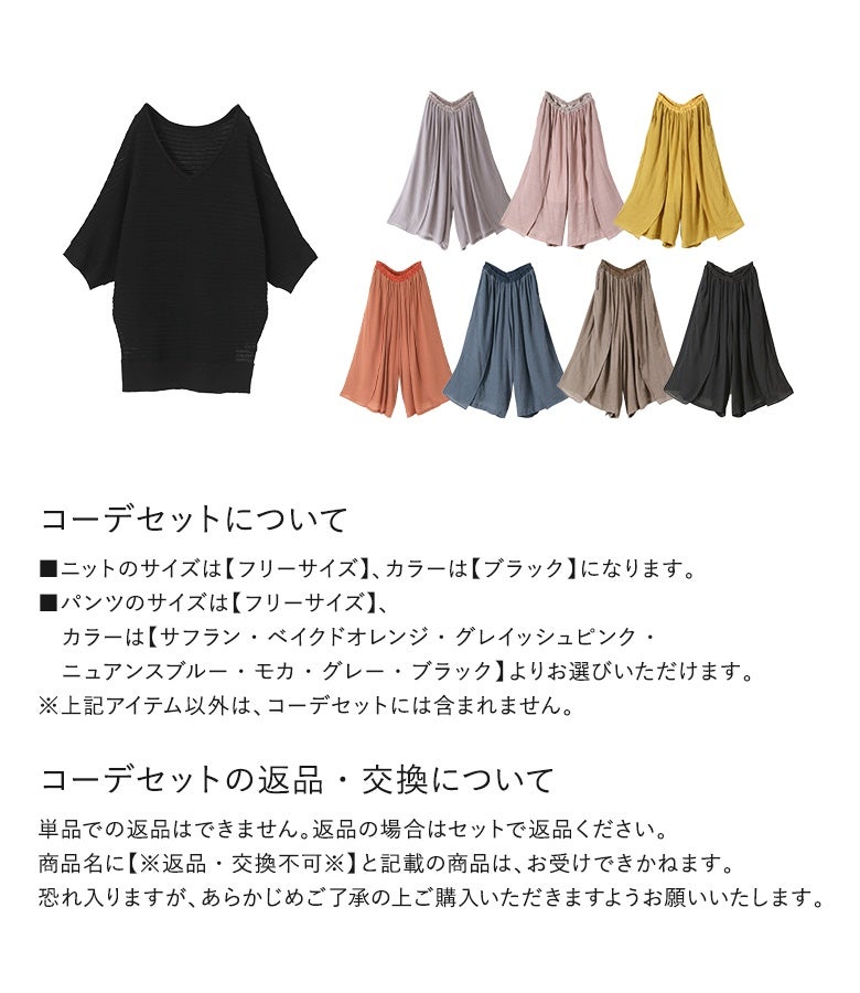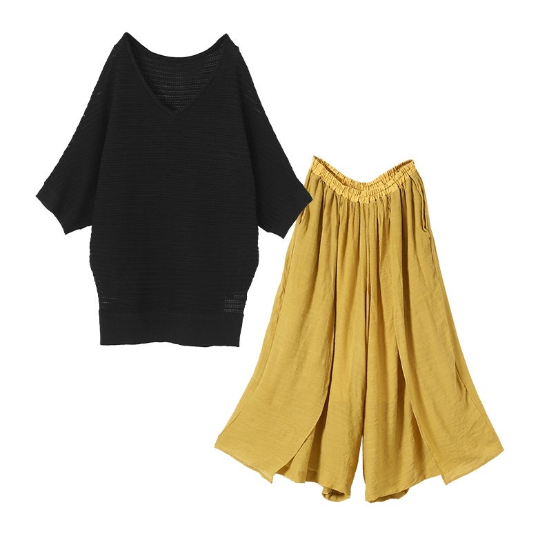 『透かし編みドルマンサマーニット×ゆるひら涼スラブパンツコーデ2点SET』