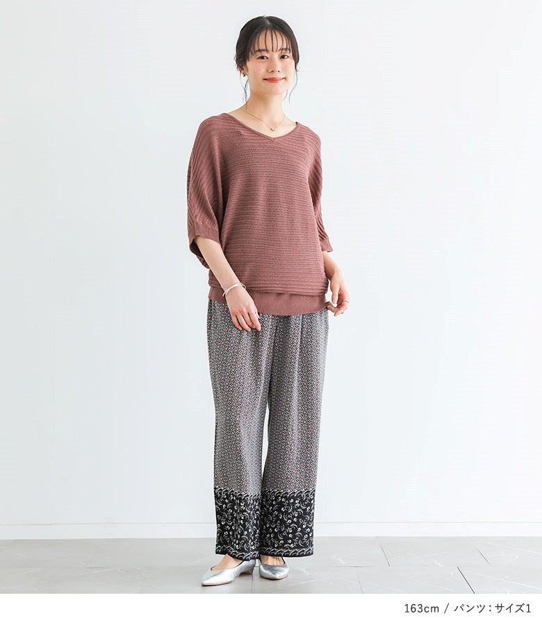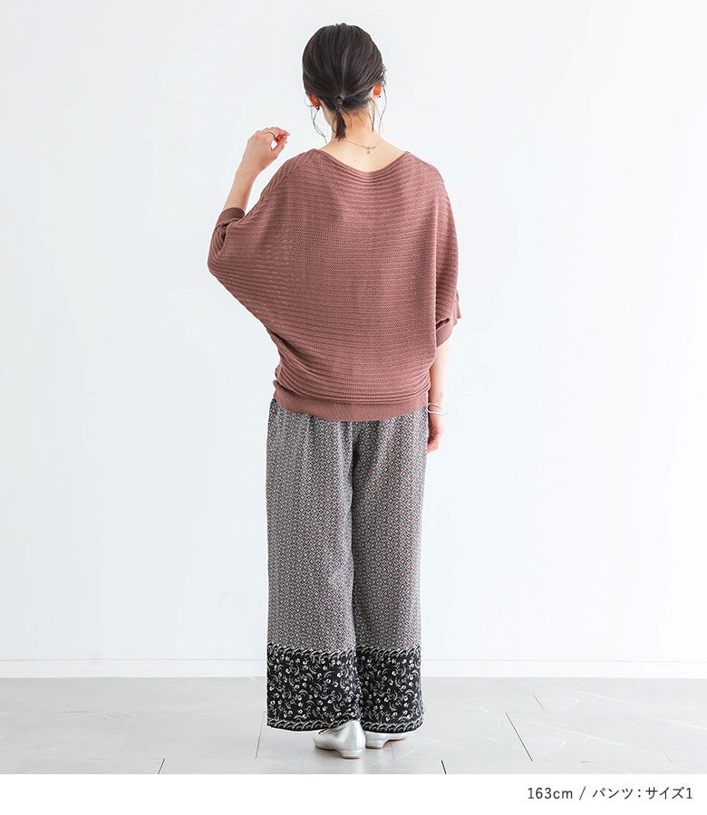 4. 『透かし編みドルマンサマーニット×パネル柄ギャザーイージーパンツコーデ2点SET』【メール便不可】【15】