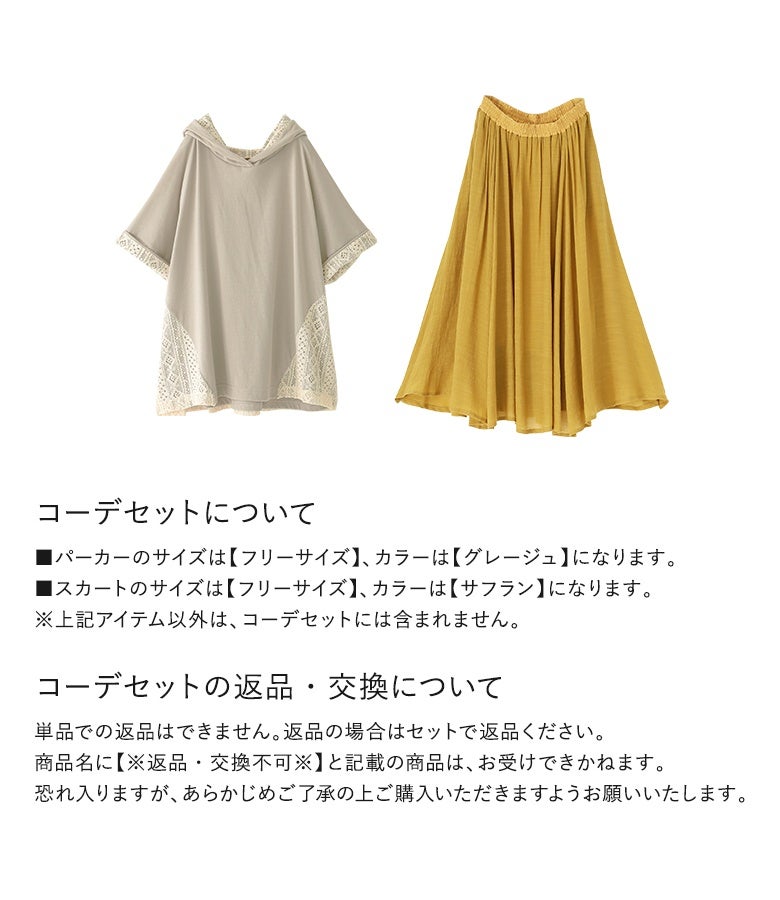 『幾何学柄レース切替パーカー×ゆるひら涼スラブスカートコーデ2点SET』