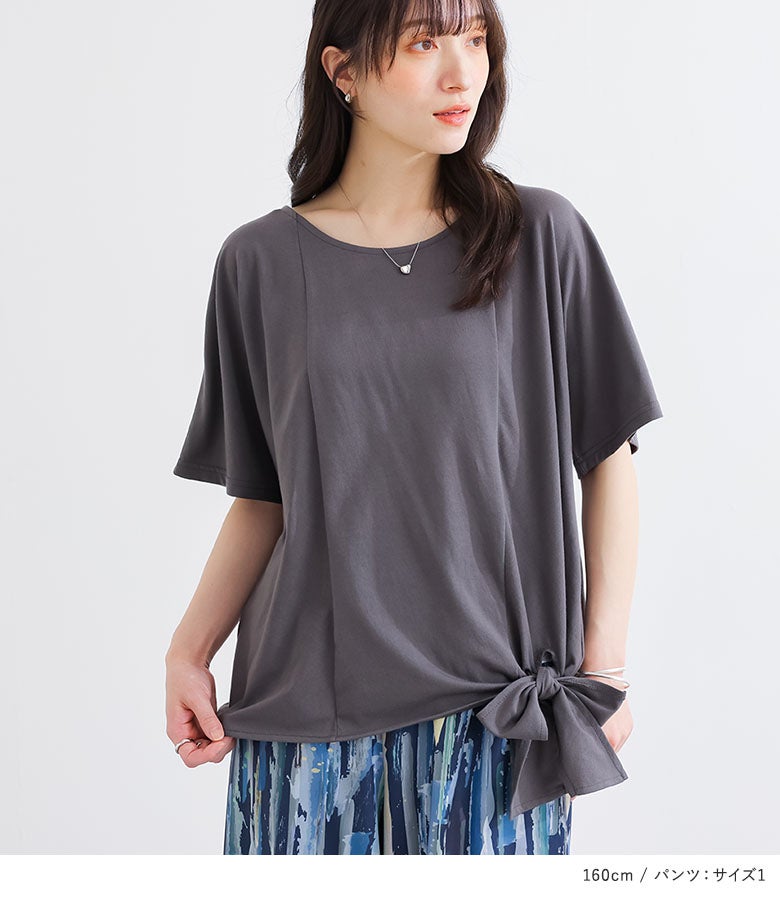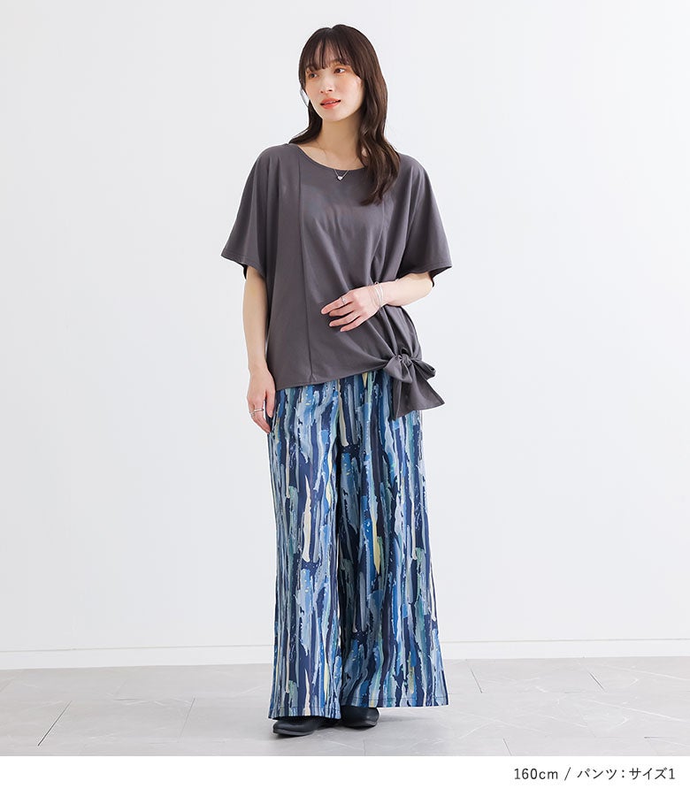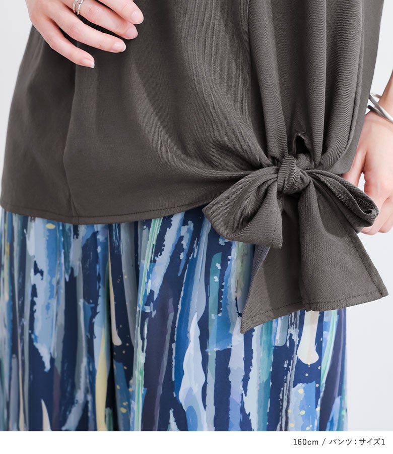 4. 『裾リボンデザインカットソー×水彩プリントワイドパンツコーデ2点SET』【メール便不可】【30】